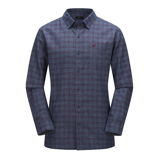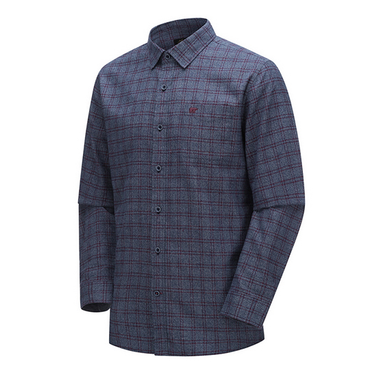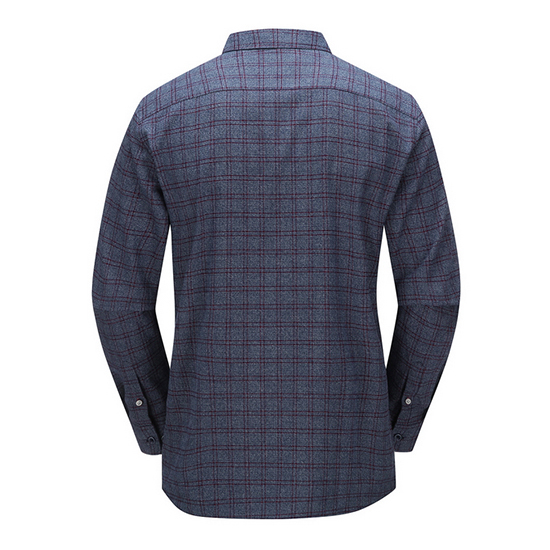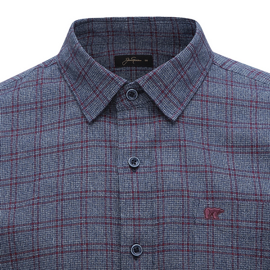 - 잔조직 바탕에 체크 패턴을 적용한 남성 셔츠.