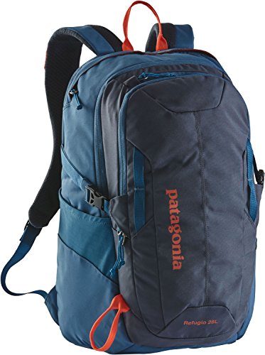 -. Brand : Patagonia -. Color : Smolder Blue w/ Glass Blue -. EAN : 0889833037960 -. Feature : Offers body made of a strong, lightweight recycled polyester with a water-repellent finish / Features air Flow-mesh shoulder straps and back panel adjustable sternum strap / Compression straps help secure load / Offers you three main compartments for maximum organization. / Features added laptop pocket is raised off the ground to protect most 15 laptops -. IsAdultProduct : 0 -. IsAutographed : 0 -. IsMemorabilia : 0 -. Label : Patagonia -. Manufacturer : Patagonia -. MPN : 889833037960 -. PackageQuantity : 1 -. PartNumber : 889833037960 -. ProductGroup : Sports -. ProductTypeName : OUTDOOR_RECREATION_PRODUCT -. Publisher : Patagonia -. Studio : Patagonia -. Title : Patagonia Refugio 28L Backpack (Smolder Blue) -. UPC : 889833037960