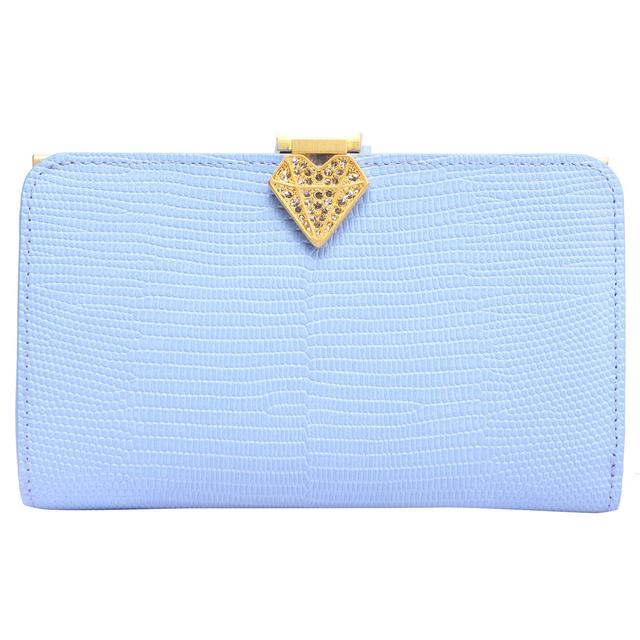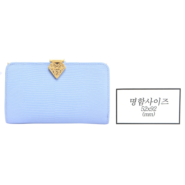 러블리한 하늘 컬러에 하트 다이아몬드 장식으로 포인트를 준 큐트한 중지갑입니다. 소가죽으로 부드러우면서도 고급스럽고 기타 수납공간을 비롯하여 다양한 내부 공간으로 실용성이 돋보입니다.
