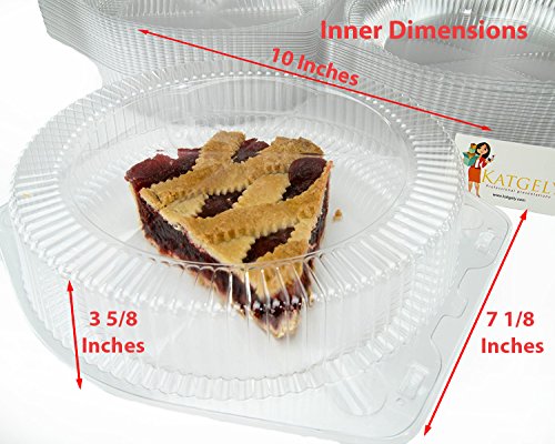 Product Description Katgely 10 Inch Plastic Pie Containers Deep Dome (Pack of 20). Ideal to take out your pies. Inner Dimensions: 7 1/8"x10"x3 5/8". Outer Dimensions: 10 9/16"x11"x3 7/8". Made in the USA and BPA Free! 0