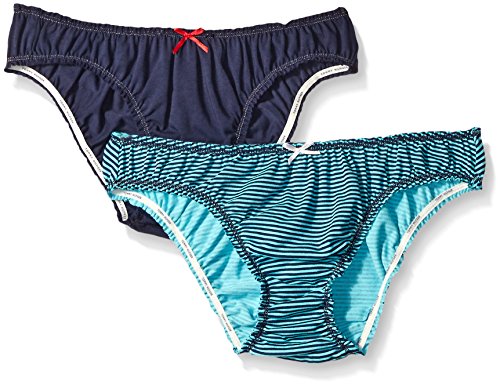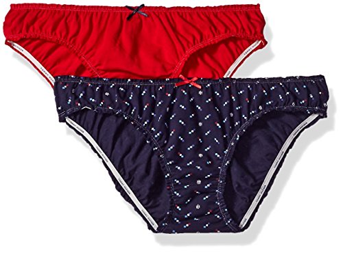 Tommy Hilfiger Women's Ruched Bikini Panty 2-Pack, Pea Coat Diamond Dot/Tango Red, Small
