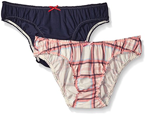 Tommy Hilfiger Women's 2 Pk Ruched Bikini, Geranium Springtime Plaid/Peacoat, Medium