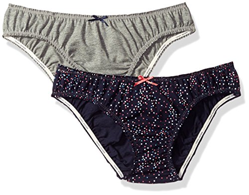 Tommy Hilfiger Women's 2 Pack Ruched Bikini, Peacoat Zoe Dot/Grey Heather, X-Large