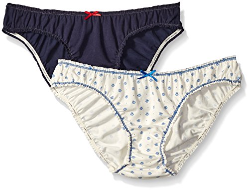 Tommy Hilfiger Women's 2 Pack Ruched Bikini, Blue Ditsy Dandy/Peacoat, X-Large