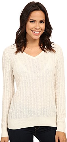 Sweater boasts a superbly soft cashmere fabrication. Rib trim at collar, cuffs, and hemline. Cable knit design. V-neckline. Long sleeves with banded cuffs. Straight hemline. 100% cashmere. Dry clean only. Imported.