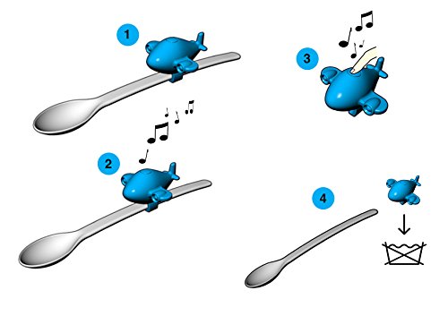 • The most adorable sound an airplane can make, just press the button on top and the plane gets "ready for take off" • The spoon is made of food grade material, CE certified • Makes dinnertime fun as the little one is completely focused on the plane landing • A great maternity gift to help young parents and caretakers • The plane is detachable for washing, battery included