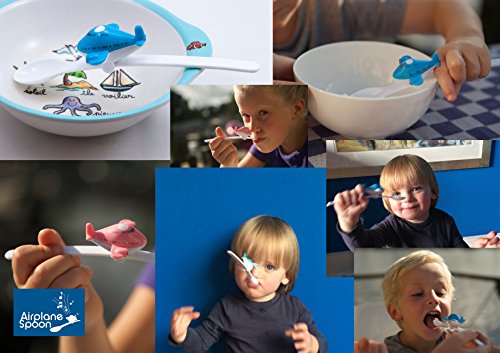 Airplane spoon Blue, children's spoon with the most adorable airplanesound!!!! Just push the button and the captain says "ready for take off"