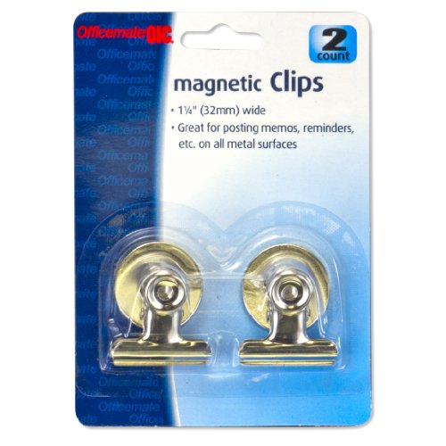 Officemate 1.25-Inch Magnetic Spring Clip, 2 in a Pack, Silver (30112)