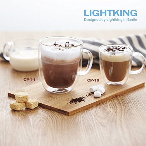 -. Brand : LIGHTKING -. Color : Transparent, crystal-clear -. EAN : 6920255862267 -. Feature : Handmade, crystal-clear, double-layer glass tea mug/cup with handle / Comes in perfectly round edge for your sip / Heat resistant protection when holding hot drinks; and staying cool longer for cold drinks without leaving condensed water on the glass / Crafted from blow-molded borosilicate glass, which is known for its toleration in wide range of instant temperature / Safe for microwave use; Capacity: 11.8oz (350ml) -. Label : Kamjove -. Manufacturer : Kamjove -. Model : CP- 11 -. MPN : CP- 11 -. PackageQuantity : 1 -. PartNumber : CP- 11 -. ProductGroup : Kitchen -. ProductTypeName : KITCHEN -. Publisher : Kamjove -. Studio : Kamjove -. Title : LIGHTKING Handmade Teacup, Double-Layer Heat Resistant Glass Tea Cup, Coffee Cup, 11.8oz/350ml - model CP-11