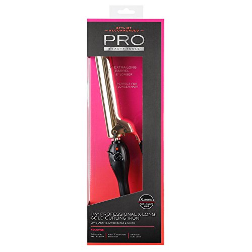 Pro Beauty Tools 24-Hour Curls Professional Extra-Long Gold Curling Iron, 1 1/4"