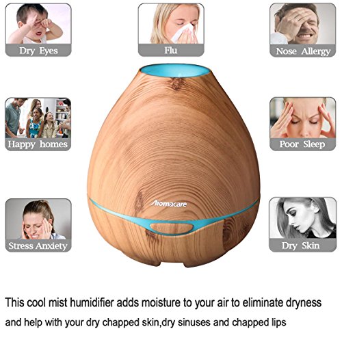 Aromacare Essential Oil Diffuser, 300ml Portable Ultrasonic Aromatherapy Diffuser with Wood Grain,Waterless Auto Shut-off,Adjustable Mist Mode,7 Color...