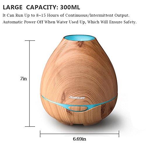 - ❤SAFE & Exquisite Design: Large 300ml water capacity that can continue use up to 12 hours each time. Automatic shut off when water is used up, no worry about being burnt; BPA FREE , safe for kids, and anti-corrosion material, to ensure your safe use. Natural wood grain with built-in cover to soften the colorful LED light; this electric fragrance diffuser makes a nice decoration to your home and office