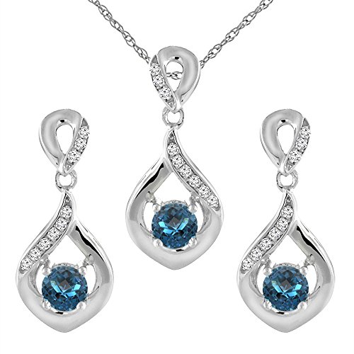 -. Binding : Jewelry -. Brand : Sabrina Silver -. Department : womens -. Feature : 14K Solid Gold / Naturally-vibrant, superior quality color gemstone / High Quality Genuine Diamond Accents / Complimentary gold chain included -. ProductGroup : Jewelry -. ProductTypeName : FASHIONOTHER -. Title : 14K White Gold Natural London Blue Topaz Earrings and Pendant Set with Diamond Accents Round 4 mm