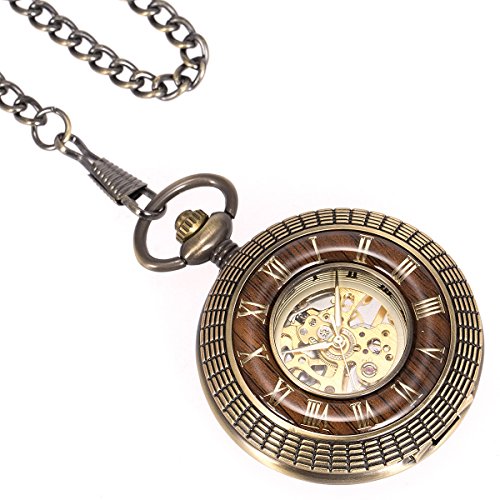 -. Title : ManChDa Mens imitative wood Luminous Skeleton Mechanical Roman Numerals Pocket Watch With Chain Gift