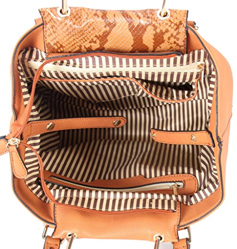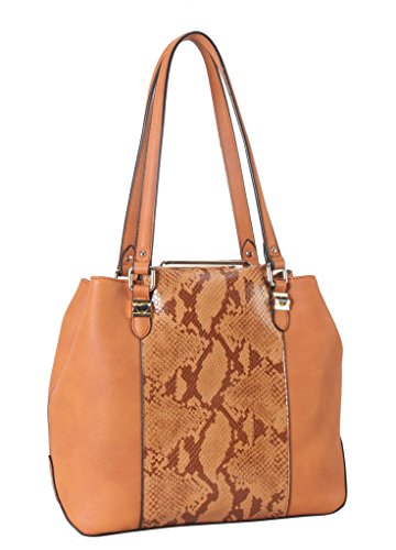 -. Title : Diophy PU Leather Front Snake Skin Pattern Adjustable Shape Tote Womens Purse Handbag Accented with Gold Metal Top Handle SD-6021