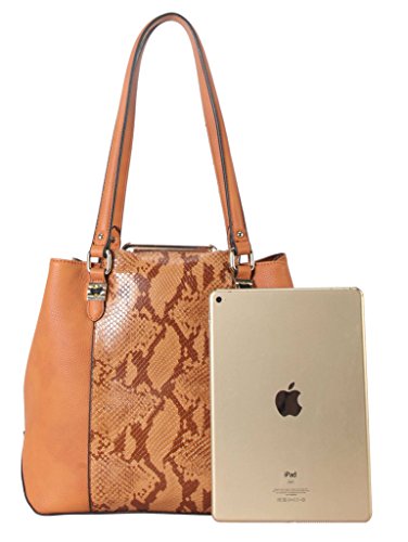 -. Feature : This handbag comes in 6 different colors: Beige, Black, Brown, Light Grey, Red, and Royalblue. / High Quality PU Leather Front Snake Skin Pattern Adjustable Shape Tote Womens Purse Handbag Accented with Gold Metal Top Handle. / High Quality Fabric Lined Interior with Multiple Interior Pockets. 1 Main Compartment with 2 Zippered Pockets and 2 Open Pockets Inside. 1 Zippered Pocket Outside in the Back. / Approximate Size info: Length 12" x Width 5.2" x Height 10.6" Material: PU Faux Leather. Top Zipper Closure. / Color showing in other color is to show the different variation angles of the handbag. The actual bag ship, will be the one your purchesed.