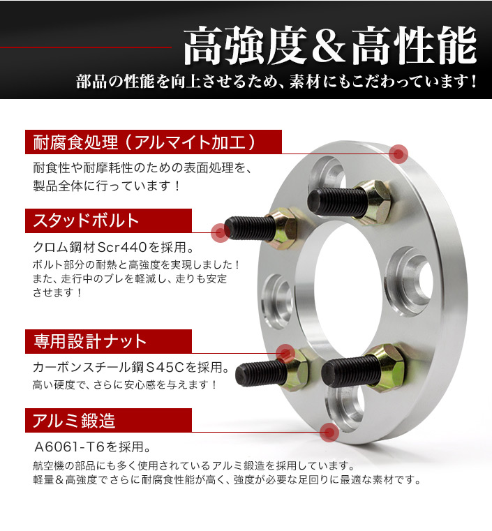 ●軽量&高強度でさらに耐腐食性能が高く、強度が必要な足回りに最適な素材です。