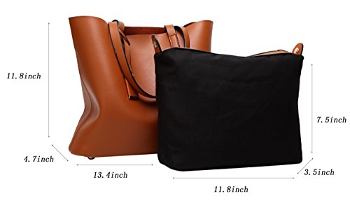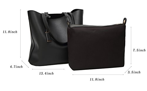 -. Feature : Material: Soft PU leather, durable and high quality gold-tone hardware / Closure: Top zipper closure, detachable inner bag / Internal Structure: Large capacity, 1 inner zipper pocket, 2 compartments open pockets for keys/card. All stuff can be well organized inside / Features: Classical pure color design, great for daily working, business, office, dating, party, shopping, traveling or any other daily occasions / Dimensions: 13.4" x 4.7" x 11.8" inches
