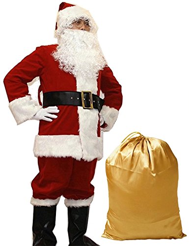 -. Title : Zollzirr 10 Pcs Complete Deluxe Velvet Christmas Santa Claus Costume Suit Adult