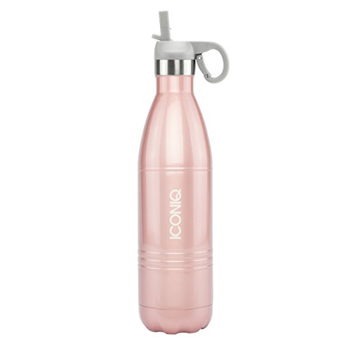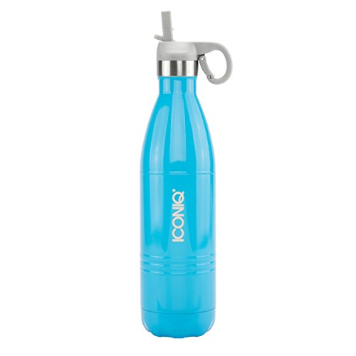 Stay refreshed and hydrated all day long with the ICONIQ Stainless Steel Vacuum Insulated Sports Water Bottle, now including our patented and easy-to-use pop up straw lid!The sleek cola bottle design is compact and convenient, 12" in height, 3" in diameter, and only 15 ounces in weight, with a 25 ounce (or 750 ml) capacity. It fits comfortably in the cup holder in your car, the water bottle holder on your bicycle, or the water bottle pouch on your backpack, or wherever you want it to go.