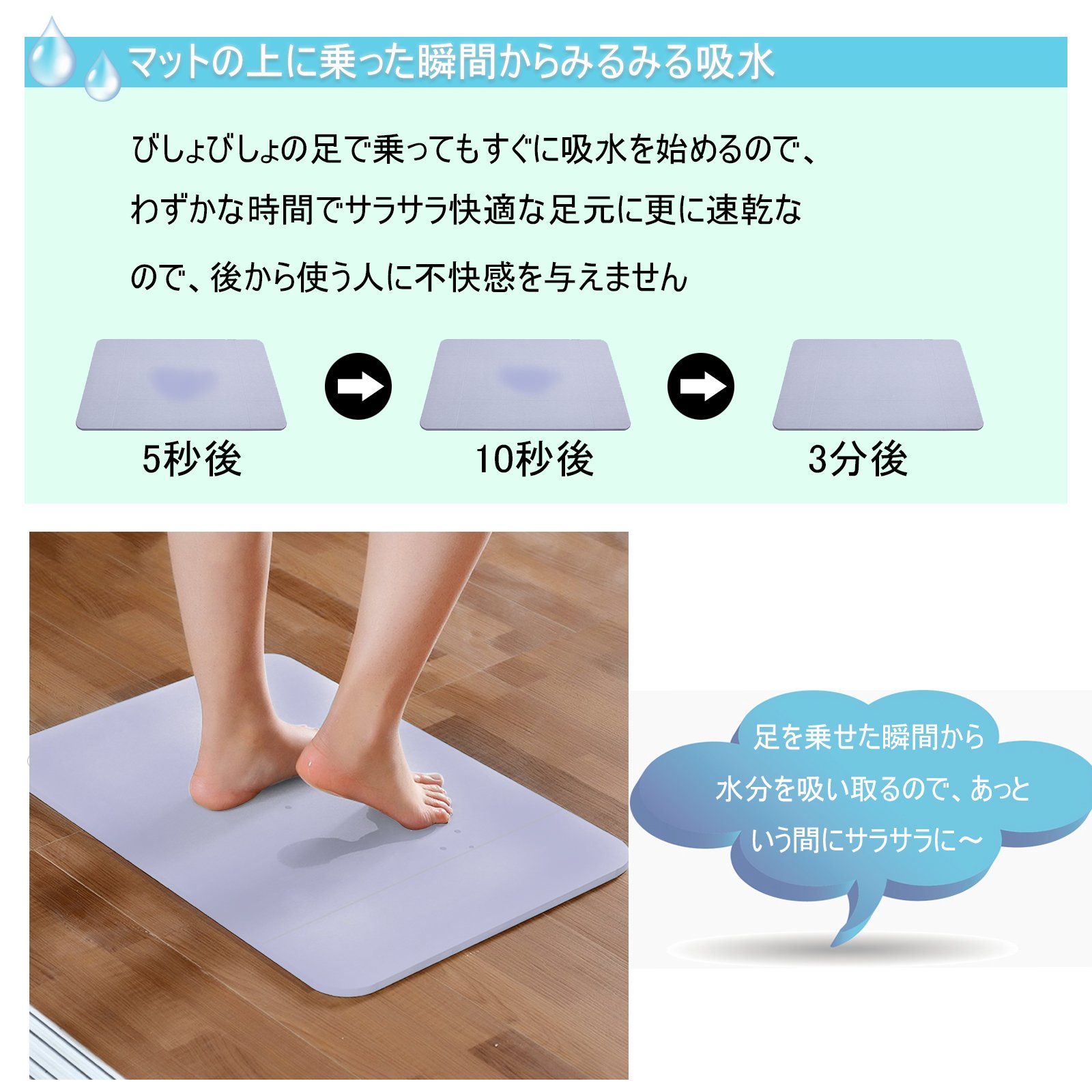 Bishabisha of the bath rising The diatomaceous earth quickly absorbs water droplets of the feet, so it is easy to use smoothly from anytime soon.