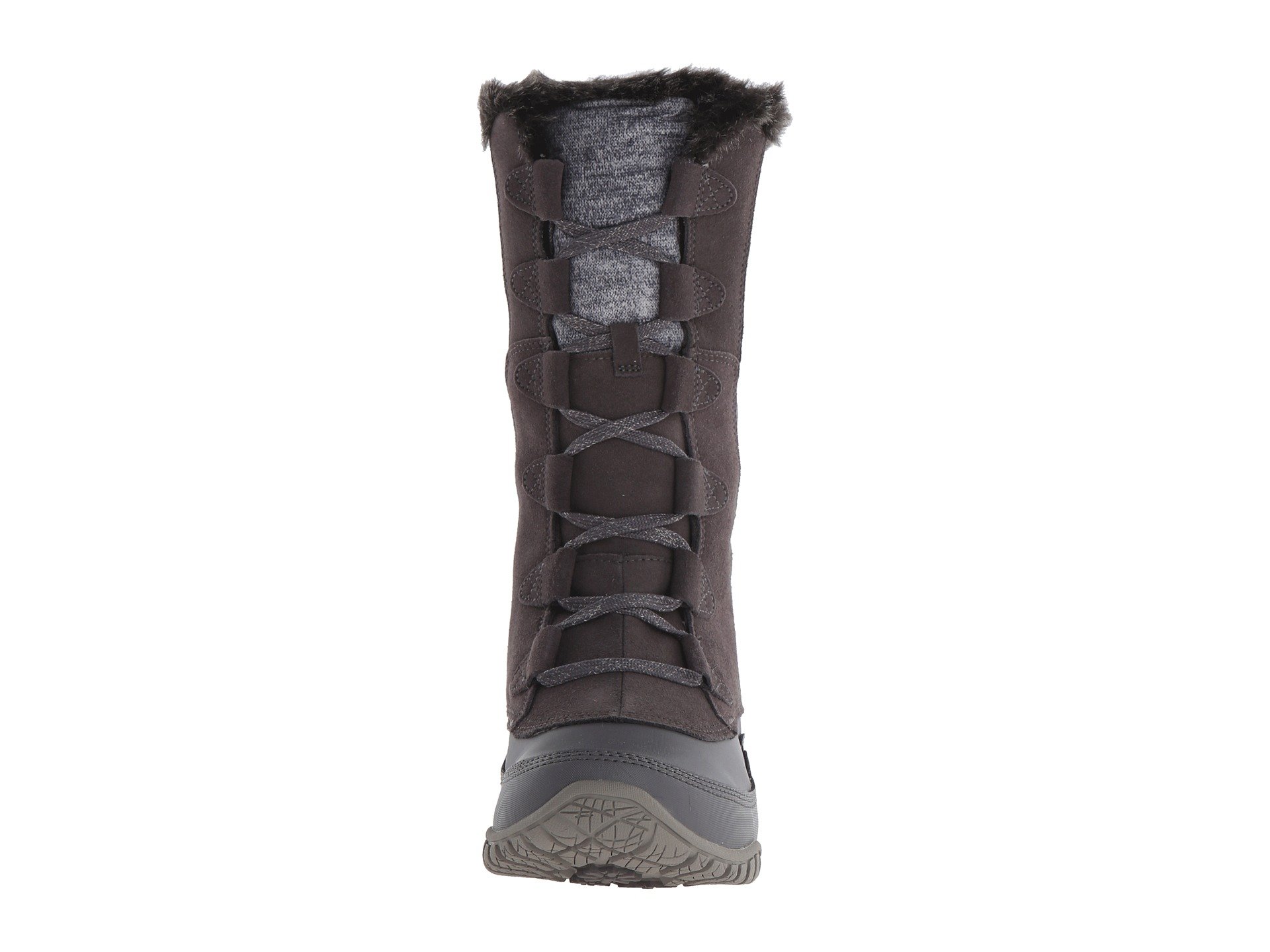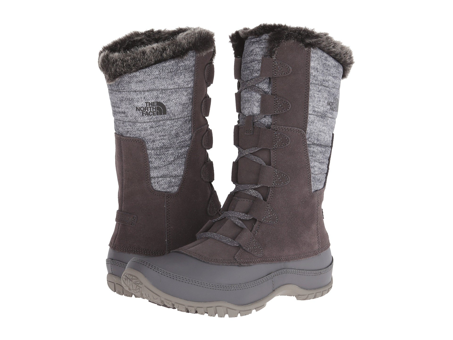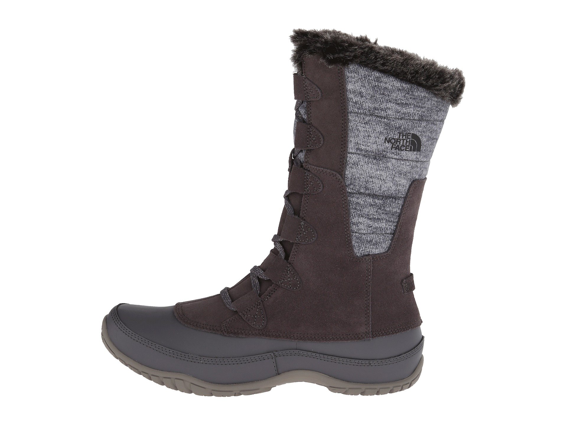 | Product Information SKU: #8138510Please note that this style is either discontinued and/or from a previous season.Keep warm and stay stylish with the Nuptse Purna boot from The North Face?. Uppers made of waterproof, BLC-complaint, velvet suede. Waterproof, lightweight synthetic shell to keep you warm. Water-resistant, baffled, 100% recycled P.E.T. ripstop cuff detail. 200 g PrimaLoft? Eco insulation creates a warm and toasty climate for your feet.Cemented and seam-sealed waterproof construction. Gusseted tongue.Full lace up closure with a faux-fur collar detail. Compression-molded EVA Northotic™ footbed.Durable TNF Winter Grip? rubber outsole with IcePick? temperature-sensitive lugs. Product measurements were taken using size 8, width B - Medium. Please note that measurements may vary by size.Measurements: Heel Height: 1 in Weight: 14 oz Shaft: 10 in |