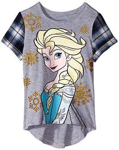 Disney Little Girls' Frozen Elsa Flannel Sleeve Top, Heather, 5/6