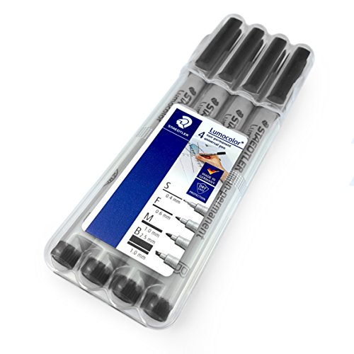 -. Binding : Office Product -. Brand : Staedtler Lumocolor -. Feature : Pack of 4 Lumocolor Non-Permanent Markers from Staedtler. Made in Germany. / Designed originally for use with overhead film, the Universal Marker is also perfect for almost all non-porous surfaces. / The water-soluble ink can be easily wiped away with a damp cloth / Comes in a handy and sturdy plastic desktop wallet. / Pack contains the following nib sizes: Superfine, Fine, Medium, and Broad. -. Label : Staedtler -. Manufacturer : Staedtler -. MPN : 31-9 WP4 -. PackageQuantity : 4 -. PartNumber : 31-9 WP4 -. ProductGroup : Office Product -. ProductTypeName : WRITING_INSTRUMENT -. Publisher : Staedtler -. Studio : Staedtler -. Title : Staedtler Lumocolor - Black Non-Permanent Universal Marker Pen - Pack of 4 Sizes - In Desktop Wallet