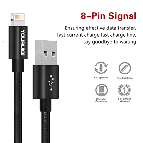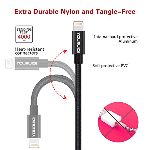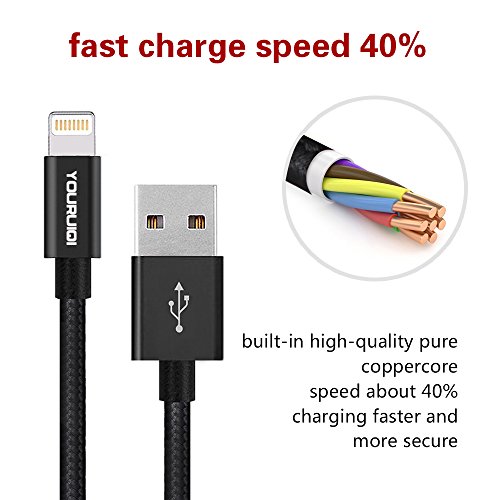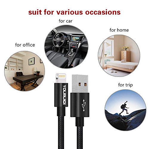 Lightning Cable,Youruiqi 2Pack 10ft Extra Long Nylon Braided High Speed Charging USB Cable Cord for iPhone Charger 7/7 Plus/6/6s/6 Plus/6s Plus … (Black)