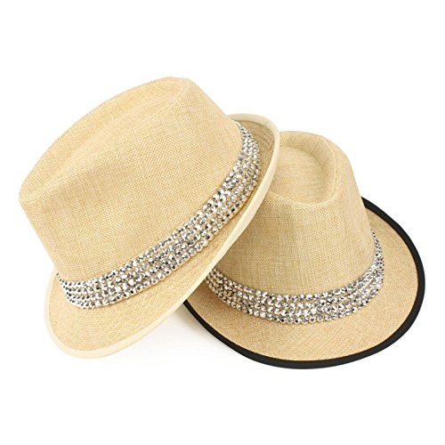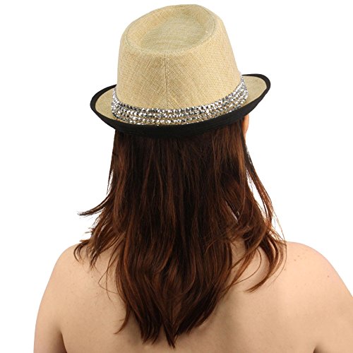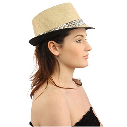 -. Title : Ladies Bling Rhinestone Stud Summer Fedora Trilby Hat Cap S 56cm Natural Black
