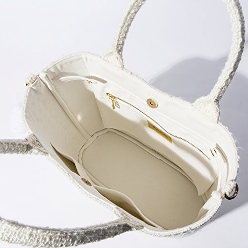 -. Feature : 約(幅35 高さ28 マチ13 持ち手41.5)cm ショルダーストラップ 約(65-126)cm 取り外し/調節可 重量 1050g / SPEC:ファスナーポケット×1, オープンポケット×2 / 組成:ツイード(アクリル70%, ポリエステル20%, 毛10%) ラビットファー / ※この商品は素材の特性上ピリング(毛玉)のできやすい生地を使用しています。