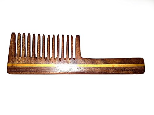 The Indian Arts Handcrafted Wooden Comb 7.5 x 2 Inches Wide tooth with handle