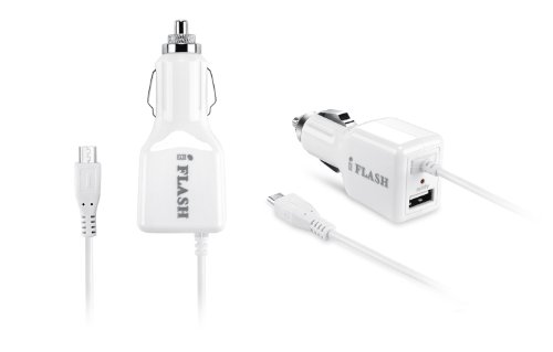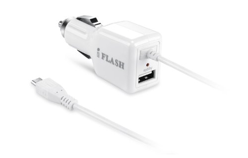 iFlash® 24W / 2.4A + 2.4A (4.8A max) 24W Portable Dual-Port USB Car Charger with [Built-in Micro USB Cable for Galaxy S6 Plus / S6 / S5 / S4 / S3; Note 5 / 4 / 3 / 2; HTC One M9/M8/M7; LG G4/G3/G2/Mini)] and [USB Port for iPhone 6 Plus / 6 / 5S / 5C / 5;