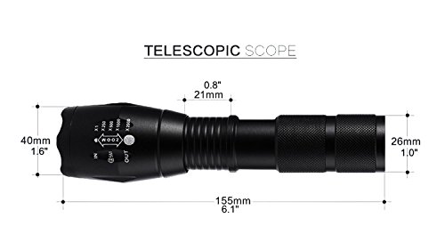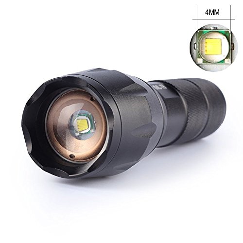 CREE XM-L T6 LED chip: White beam can be seen from miles away and has 3 modes: Bright-SOS-STROBE. By Zooming function you can Rotate to adjust focus to meet your different demands.