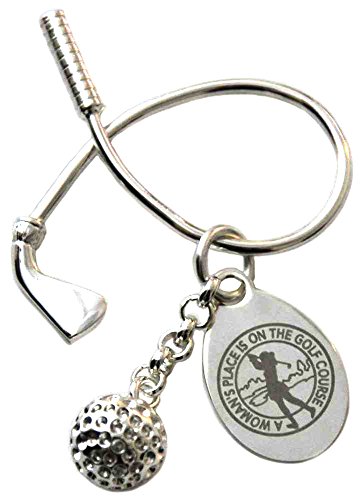 -. Feature : Sterling Silver plated / Woman's place in on the golf course laser engraving / Dangling golf ball charm