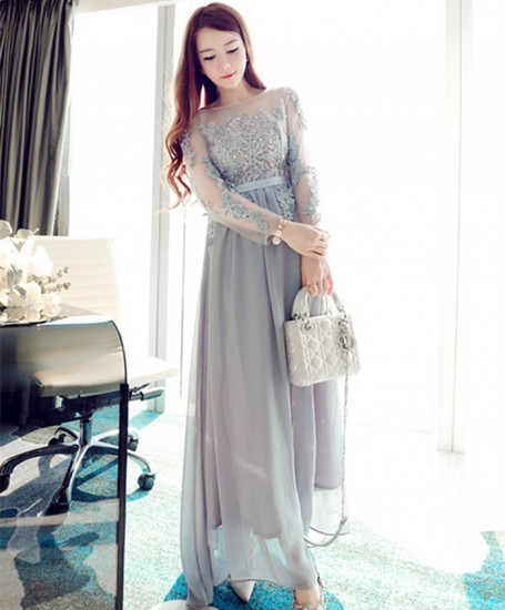 花柄 レース ロング ドレス 結婚式 ディナー 発表会 ワンピース 上品 エレガント 可愛い 大人 お呼ばれ drgz0598