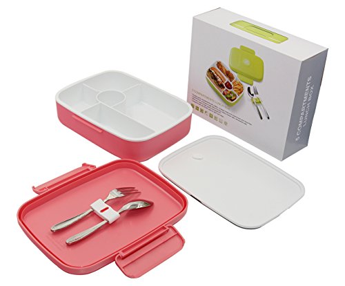 Superbpag 5 Compartment Reusable Bento Lunch Boxes with Lids (Pink)