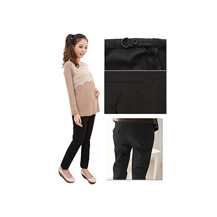 (Les Hiboux) 마타니티 예쁜 팬츠 웨스트 고무 adjuster 조절 바지 레이브《―》 오리지날 태그 들어감 ( L,블랙 )