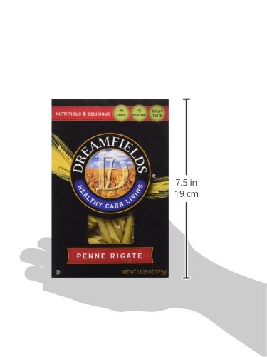 -. Binding : Grocery -. Brand : Dreamfields -. EAN : 0767387034195 -. Feature : Dreamfields has 5 grams of fiber and 7 grams of plant protein per serving / Dreamfields Helps you feel full with a balance of fibers and plant proteins / Dreamfields contains a Prebiotic fiber which helps promote healthy digestion / Dreamfields has all of the Taste and texture of traditional pasta -. Label : Dreamfield's -. Manufacturer : Dreamfield's -. Model : 150721 -. MPN : 76738703419 -. PackageQuantity : 1 -. PartNumber : 76738703419 -. ProductGroup : Grocery -. ProductTypeName : GROCERY -. Publisher : Dreamfield's -. Size : 13.25 oz -. Studio : Dreamfield's -. Title : Dreamfields Pasta Penne Rigate, 13.25 oz -. UPC : 767387034195