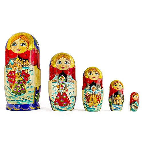 -. Title : 7" Set of 5 Winter Christmas Festival Russian Matryoshka Wooden Nesting Dolls