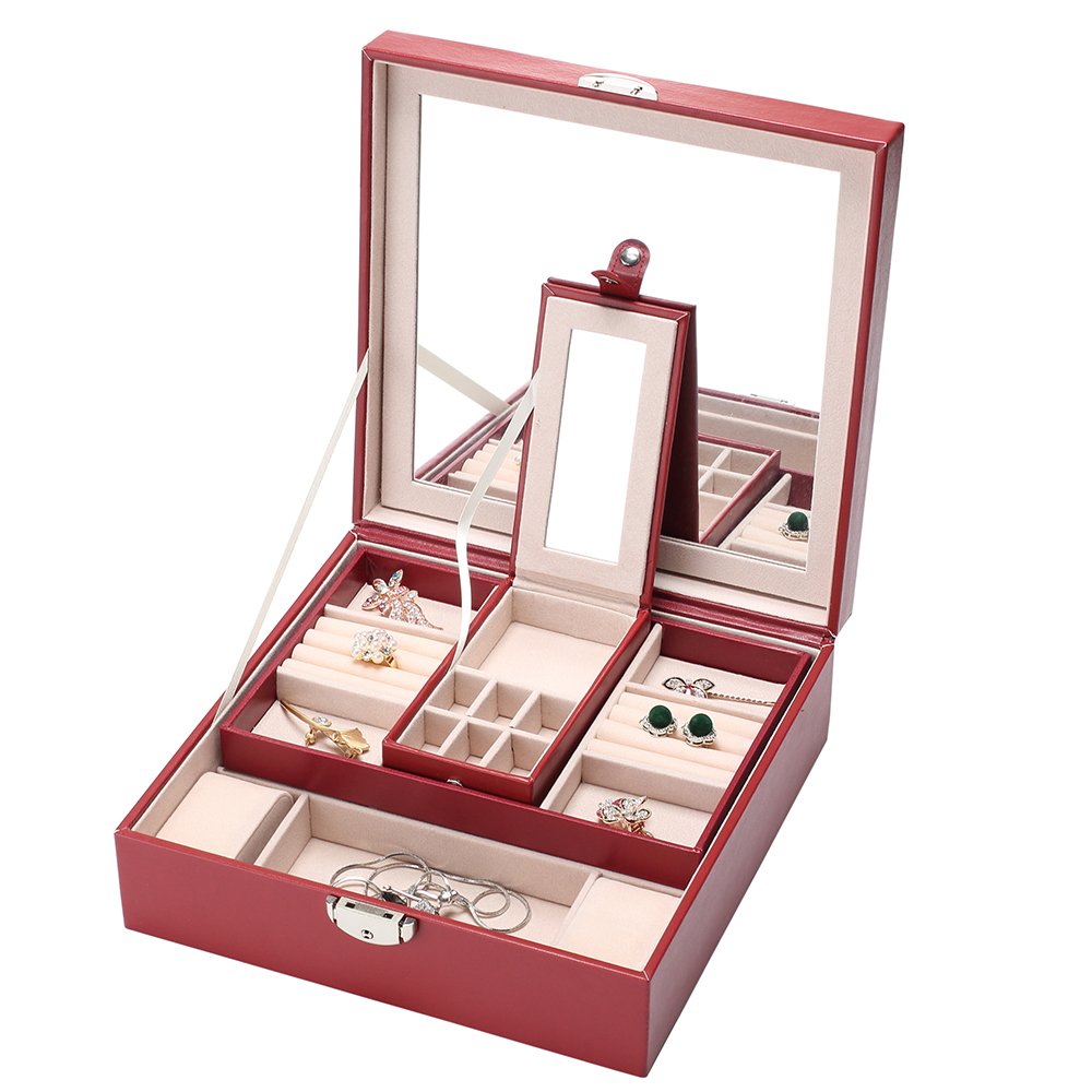 【エレガントなジュエリーボックス】 - このジュエリーオーガナイザーは、上に特別な刺繍の工芸を採用した高品質PUです。 【大きいジュエリートレイ】 - この二層の宝石箱は、さまざまなサイズのジュエリーにフィット、ネックレス、イヤリング、指輪、ブレスレット、時計などを保存するために、大容量であります。あなたの時間と部屋(やスーツケース)のスペースを節約します。小物を探すために、引き出しの中で掘り進む必要はありません。 【ミラー付きジュエリーケース】 - 大きなメイクアップミラー付きです。メイクアップを容易にする大型リムーバブルミラー。ボックスはミラーとジュエリーをちゃんと守ってあげって、あなたはもはや旅行中に宝石が砕かれることを恐れていません。大きなジュエリーを置くために、下のパーティションは外れることができます。時計枕2つ付属しています。従って2つ以上の区画があります。 【旅行 宝石箱】 - 真ん中にある小さなボックス、旅行中にあなたの宝石を整理することを可能にする。このジュエリーボックスは、クリーニングが簡単で、すべてのジュエリー愛好家にとって必須の装飾品であると思います。