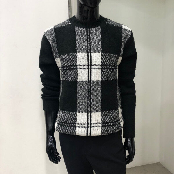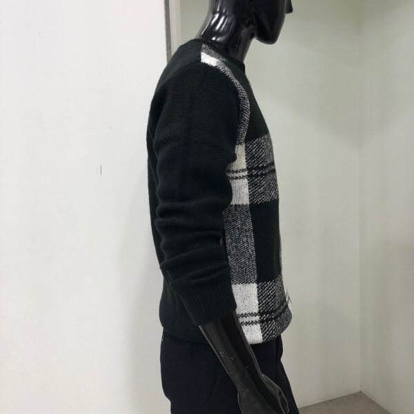 헤어리한 원사를 사용하여 따뜻한 느낌을 주며 앞판 체크 패턴을 사용한 스웨터 입니다.