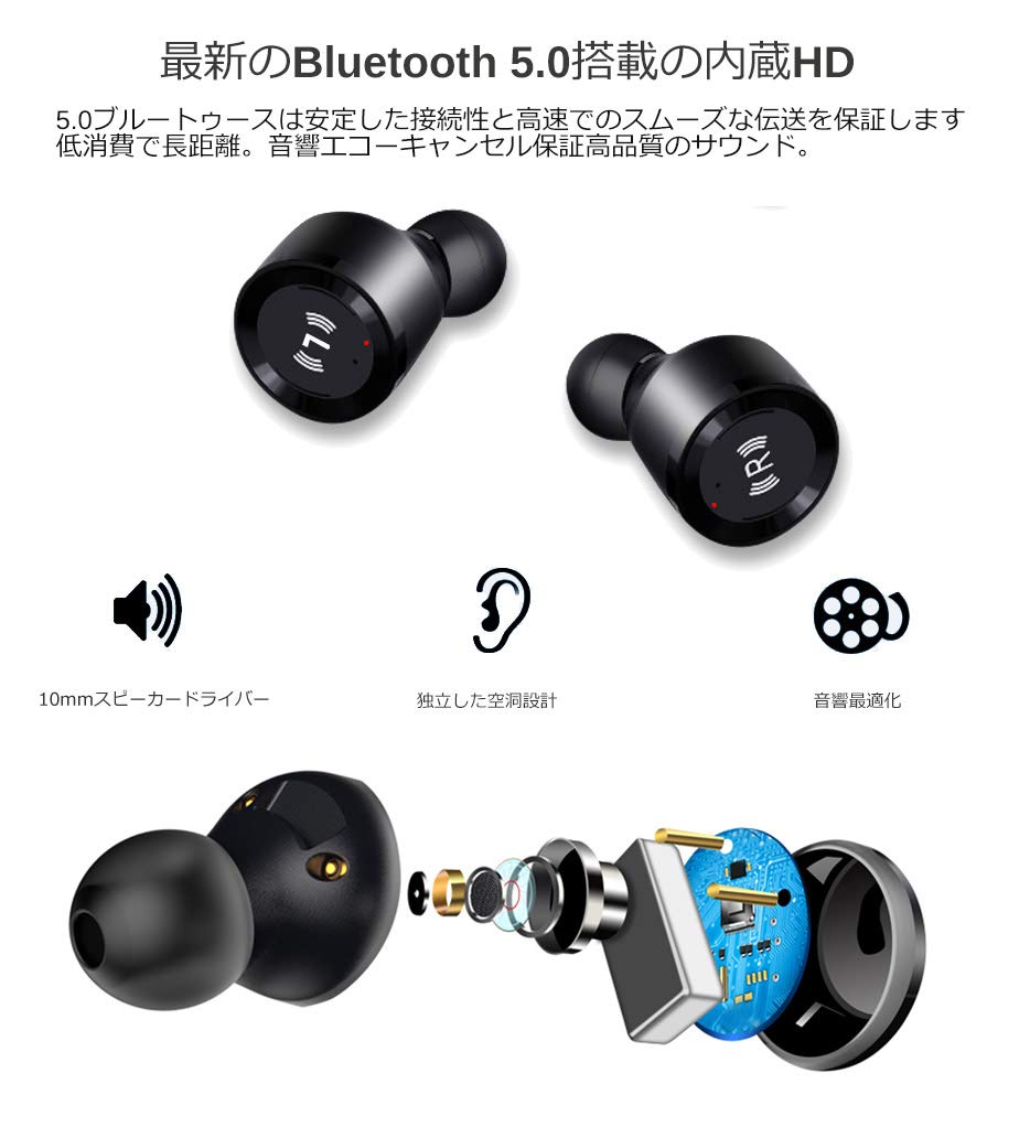 最先端Bluetooth5.0 技術搭載:より強力になったBluetooth接続性能 : ワイヤレス イヤホンは最新のBluetooth 5.0技術により、2倍のデータ送信速度と8倍のデータ転送能力、従来比の約4倍の通信範囲が可能になりました。接続性を向上させ、サウンドを改善するために非常に効率的なワイヤレスを生成します.V5.0のマイク付耳栓で、 1つのボタンを押すと、一時停止や再生、音量のコントロール、曲のスキップ、SIRIの起動などができます。