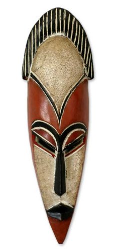 NOVICA Decorative Large Wood Mask, White 'Protect The Forest'