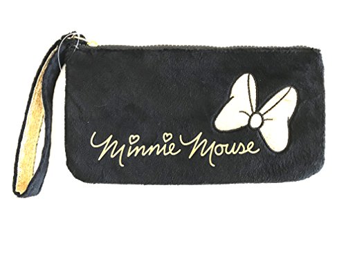 - Super soft black velvety with gold lame accents and Minnie Mouse signature decorate this cute clutch by Disney