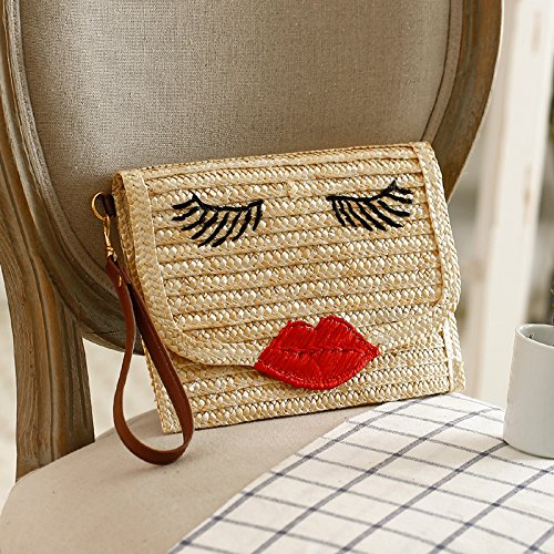 Kissy Lips Woven Purses Envelope Clutch,Bag 6"H x 8.7"W