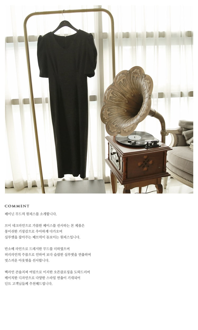 D3474 라이징 볼륨 퍼프 원피스 Black