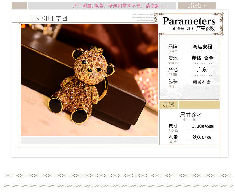可爱小熊水晶钥匙扣女韩国钥匙链汽车时尚钥匙挂件镶钻送女生礼物