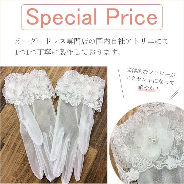 グローブ本体:ストレッチオーガンジー(ナイロン100%) ダイヤモンドオーガンジー、ポリエステルオーガンジー スワロフスキービーズ、パール |
