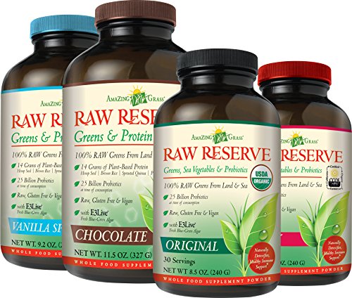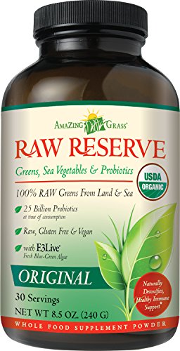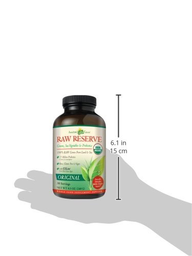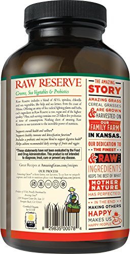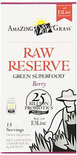 Raw Reserve is the most complex, organic blend of broad-spectrum greens available in two delicious flavors: Original and Berry! Each serving contains a blend of the highest-quality, nutrient-dense ingredients from the land, fresh water, and the sea. Raw Reserve is the ultimate combination of highly alkalizing greens, sea vegetables, and probiotics. In addition to the grasses grown at our family-run farm in Kansas, Raw Reserve includes E3Live® fresh blue-green algae, spirulina, chlorella, kelp, sea lettuce, alfalfa, kale, and many other ingredients to create the most premium green superfood blend! Raw Reserve guarantees 25 billion probiotics at the time of consumption (versus manufacturer date) in each serving. Amazing Grass® is dedicated to the finest and raw ingredients keeping the best of what Mother Nature has perfect. In the end, making others happy makes us happy people!Feature